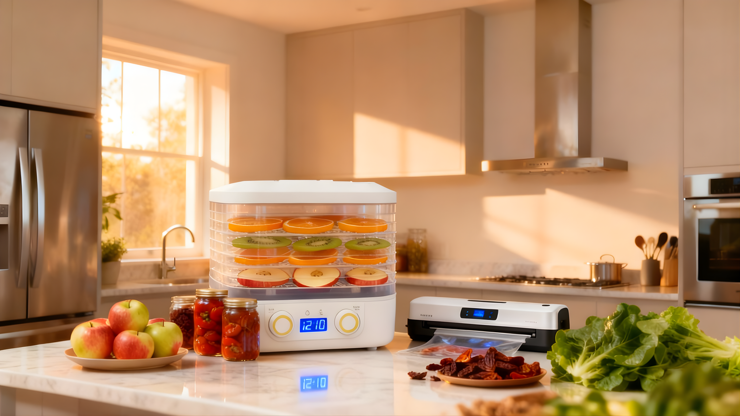 Découvrez nos déshydrateurs alimentaires, conçus pour sécher naturellement vos aliments, prolonger leur durée de conservation et réduire le gaspillage.