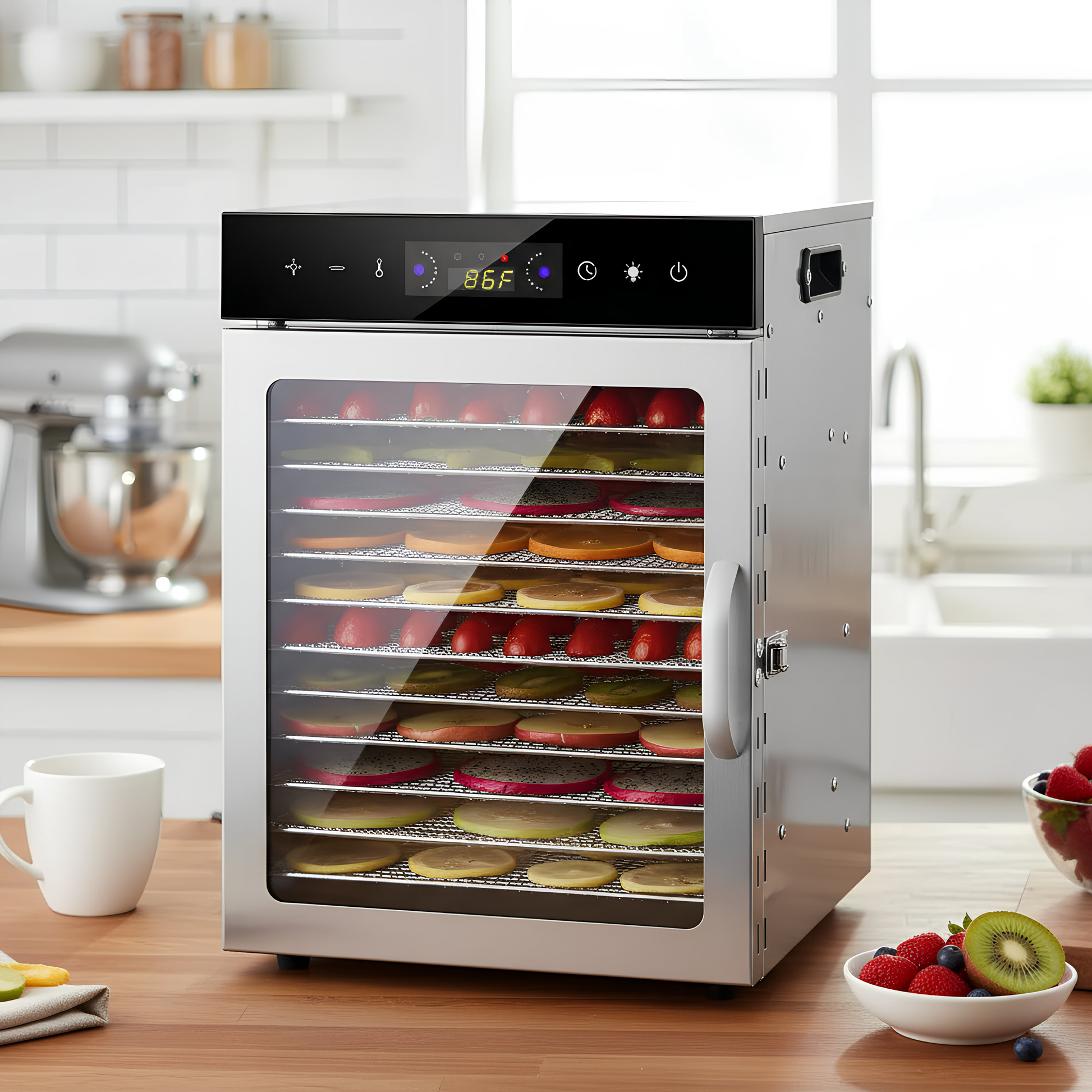 Un déshydrateur alimentaire retire progressivement l’eau contenue dans les aliments à basse température. Ce procédé aide à réduire le gaspillage alimentaire et à prolonger naturellement la durée de conservation. Les aliments conservent une texture et des saveurs concentrées, idéales pour réaliser des fruits séchés, des herbes aromatiques, des légumes croquants ou des snacks simples à emporter.